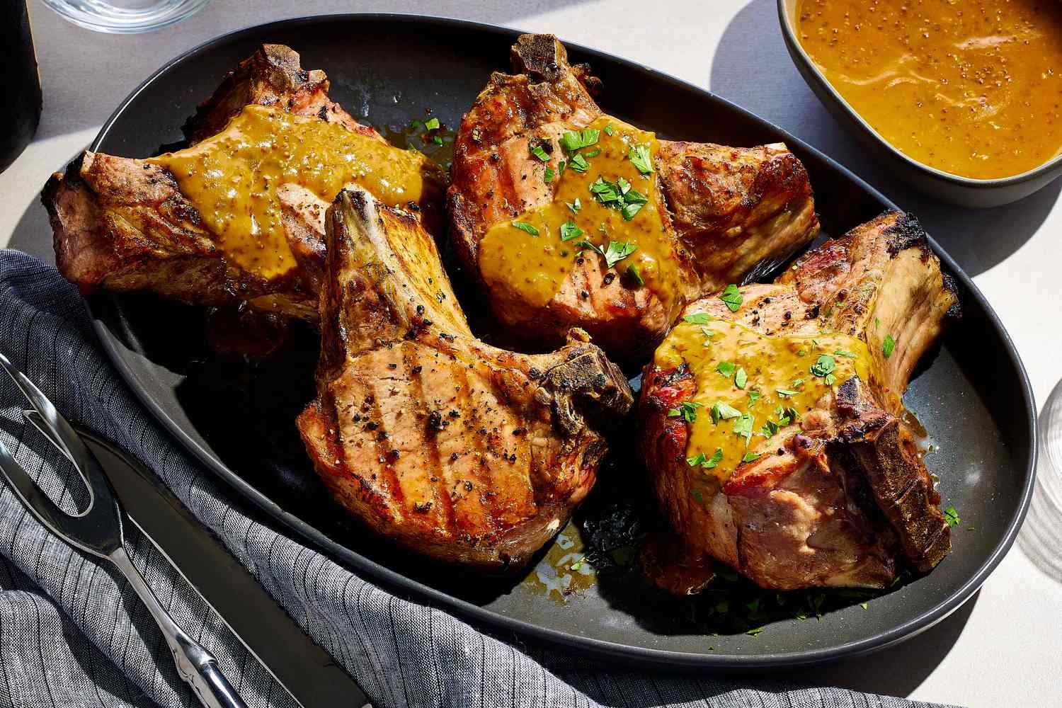 In conclusion, double-cut pork chops are a delicious and impressive dish that is perfect for special occasions. The combination of the apple cider brine, smoky grilled chops, and tangy mustard sauce creates a flavorful and satisfying meal that is sure to please. So next time you’re looking for a show-stopping main course, consider making these cider-brined double-cut pork chops for a memorable dining experience.