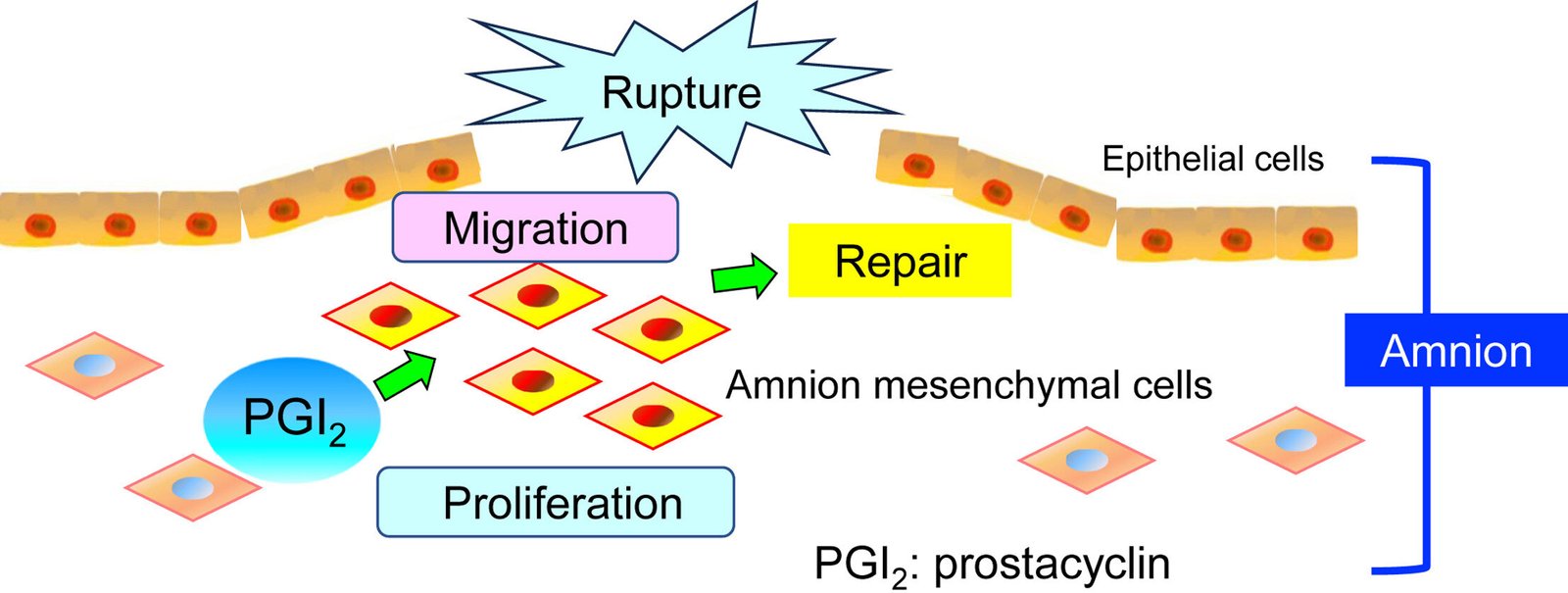 Key findings from the study included the upregulation of genes responsible for prostaglandin signaling and prostacyclin at the rupture site, increased numbers of repair cells, and impaired membrane healing with pharmacological inhibition of the IP receptor. Additionally, experiments with IP-deficient mouse fetuses and human amnion mesenchymal cells confirmed the crucial role of prostacyclin in promoting membrane repair.